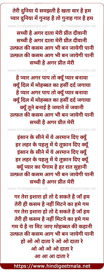 Lyrics of Sachhi Hai Agar Preet Meri - सच्ची है अगर प्रीत मेरी