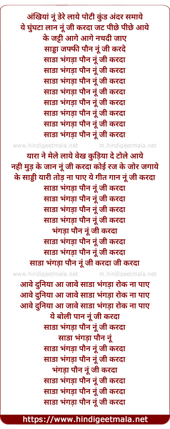 Lyrics of Sada Bhangda Paun Nu Ji Karda - साडा भंगड़ा पौन नूं जी करदा