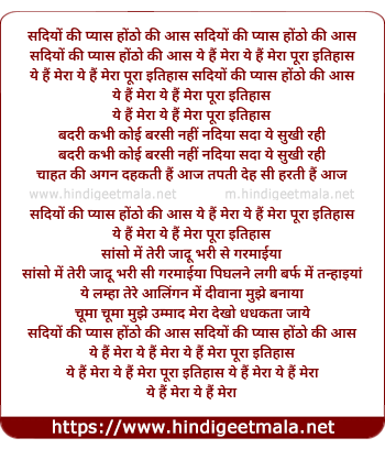 Lyrics of Sadiyo Ki Pyaas Hotho Ki Aas - सदियों की प्यास होंठो की आस