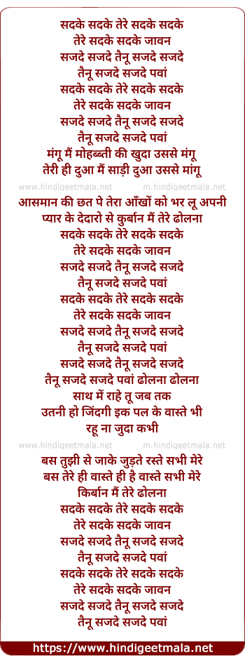 Lyrics of Sadke Sadke Jaawan (Reprise) - सदके सदके जावां