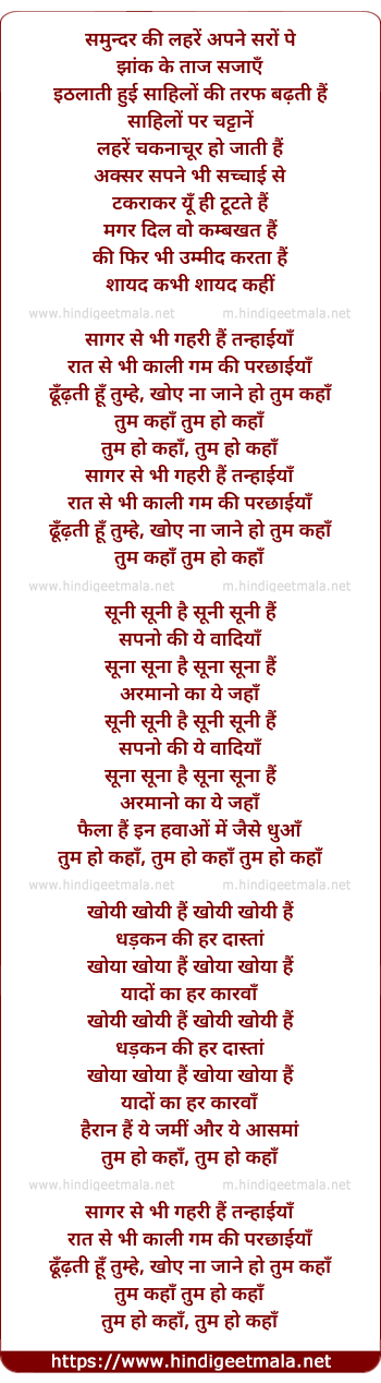 Lyrics of Sagar Se Bhi Gehri Ye Tanhaiya - समुन्दर की लहरें अपने सरों पे