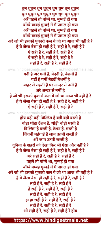 Lyrics of Sahee Hai Re, Sahee Hai Re - सही है रे, सही है रे