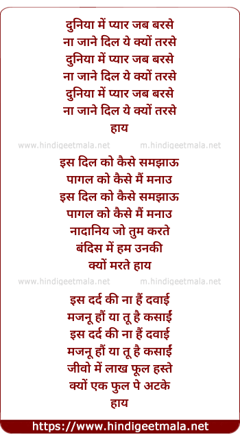 Lyrics of Dunia Me Pyar Jab Barse - दुनिया में प्यार जब बरसे