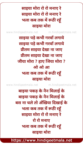 Lyrics of Saiya Mora Ro Ro Manaaye - साइया मोरा रो रो मनाए