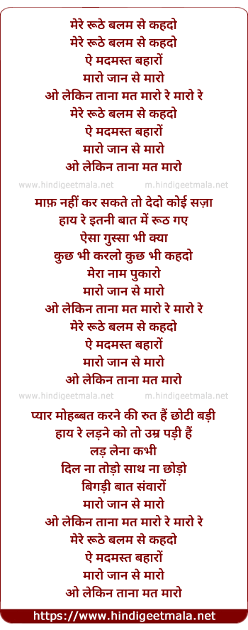 Lyrics of Maro Jaan Se Maro - मारो जान से मारो