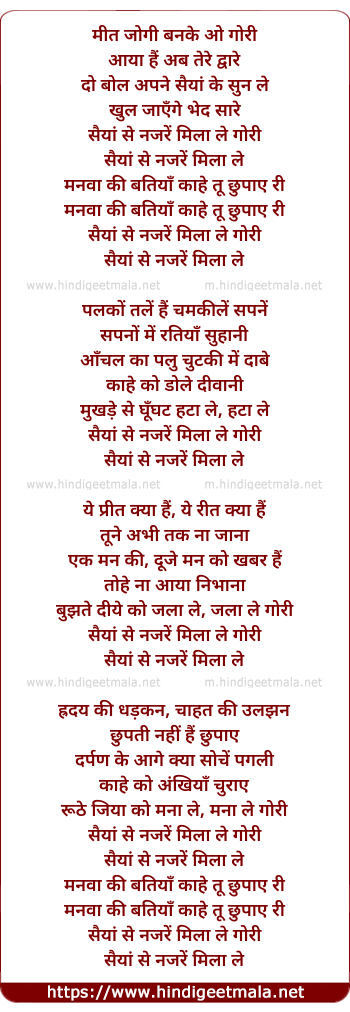 Lyrics of Saiyyan Se Nazre Mila Le - सैयां से नजरें मिला ले