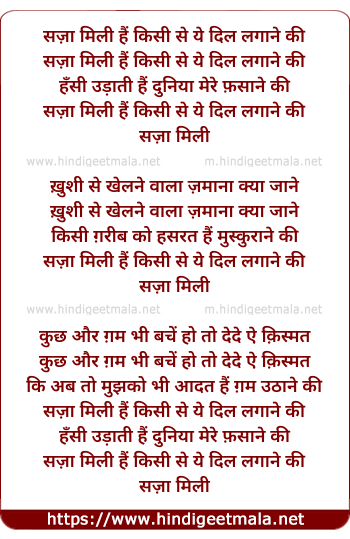 Lyrics of Saja Milee Hai Kisi Se Yeh Dil Lagane Kee - सज़ा मिली हैं किसी से ये दिल लगाने की