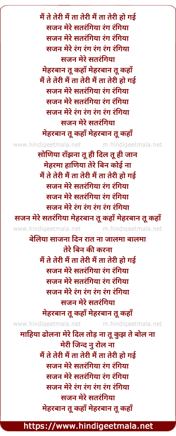 Lyrics of Sajan Mere Satrangiya - सजन मेरे सतरंगिया