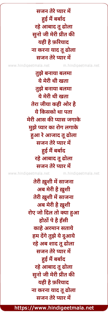 Lyrics of Sajan Tere Pyar Me - सजन तेरे प्यार में