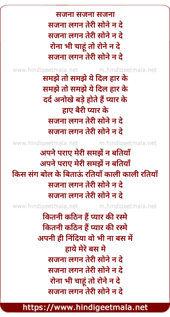 Lyrics of Sajana Lagan Teri Sone Na De - सजना लगन तेरी सोने ना दे
