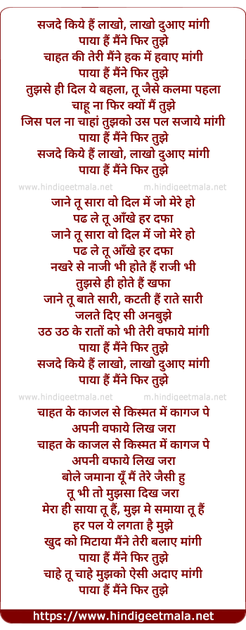 Lyrics of Sajde Kiye Hai Lakho (Remix) - सजदे किये हैं लाखो, लाखो दुआए मांगी