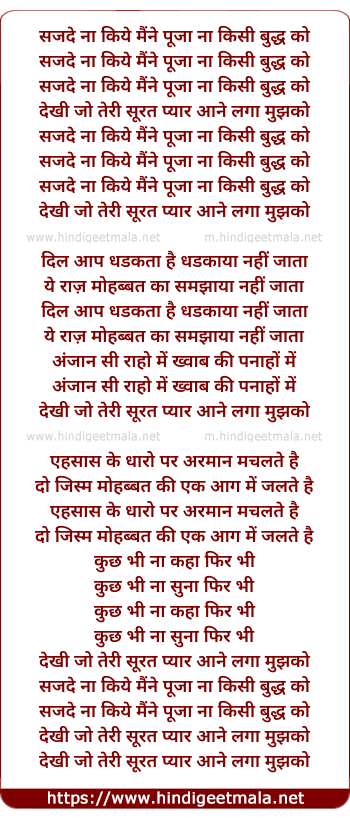 Lyrics of Sajde Na Kiye Maine - सजदे ना किये मैंने