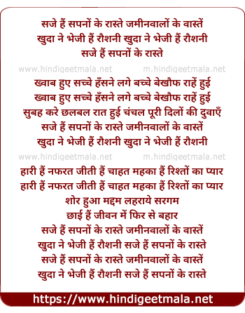 Lyrics of Saje Hai Sapano Ke Raaste - सजे हैं सपनों के रास्ते
