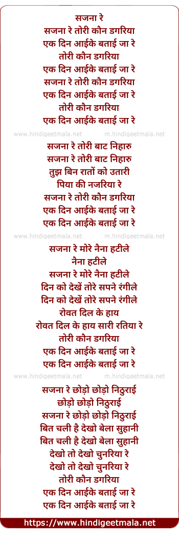 Lyrics of Sajna Re Tori Kaun Dagariya - सजना रे