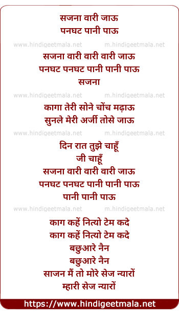 Lyrics of Sajna Vaari - सजना वारी जाऊ