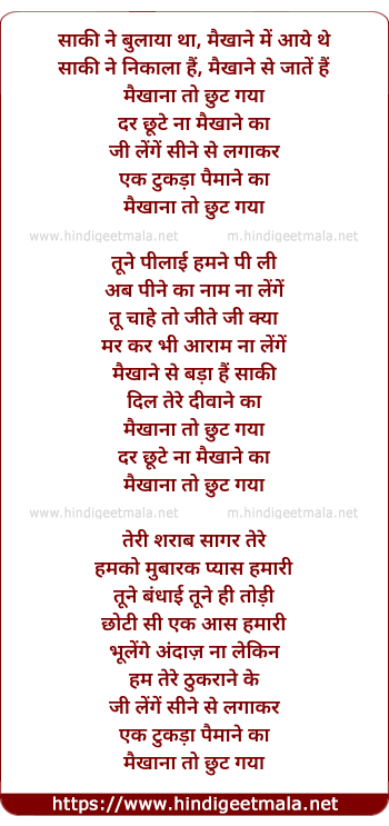Lyrics of Saki Ne Bulaya Tha Maikhane Me - साकी ने बुलाया था मैखाने में