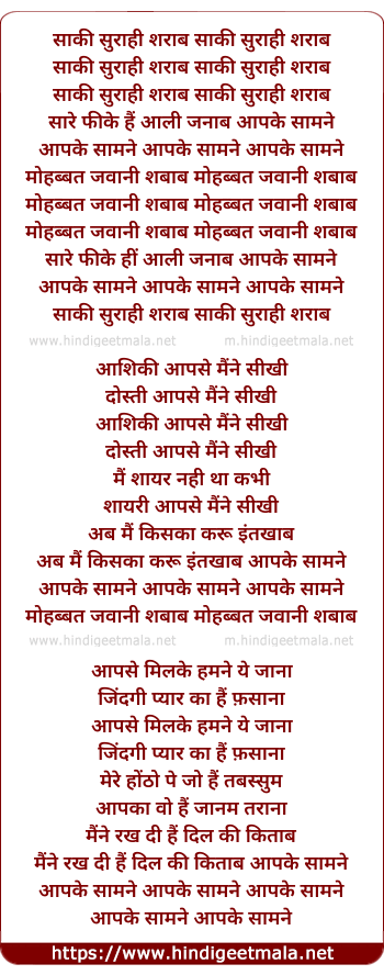 Lyrics of Saki Surahi Sharab - साकी सुराही शराब