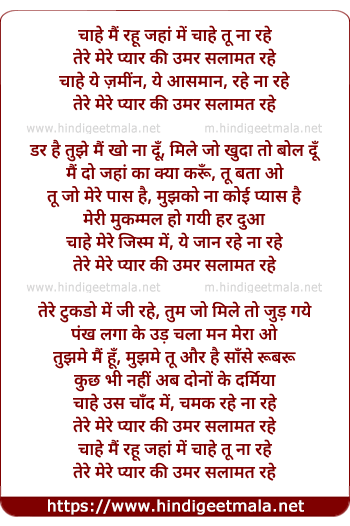 chahe main rahu jaha me chahe tu na rahe