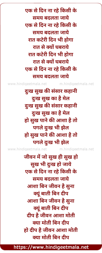 Lyrics of Samay Badaltaa Jaaye - एक से दिन ना रहे किसी के