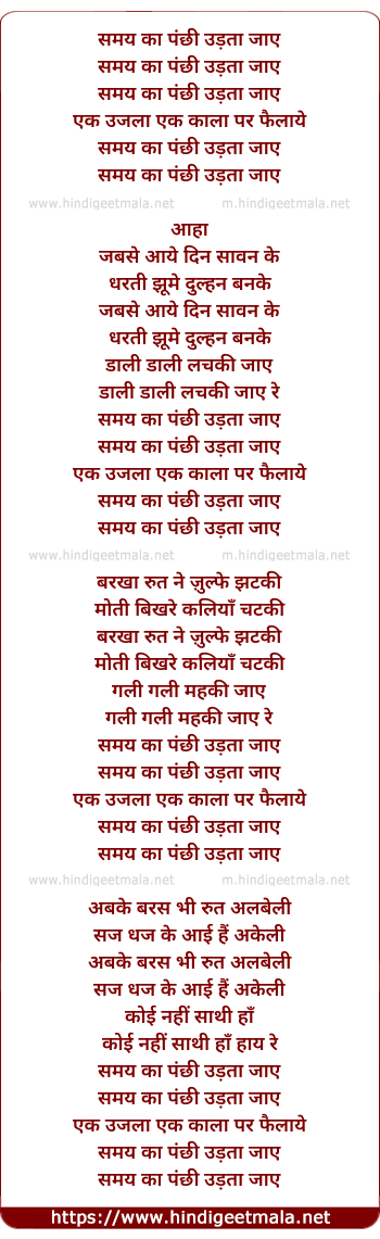 Lyrics of Samay Ka Panchhi Udta Jaye - समय का पंछी उड़ता जाये