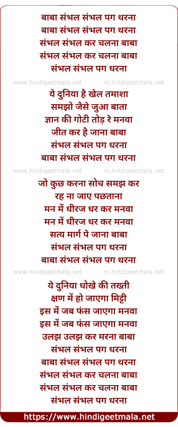 Lyrics of Sambhal Sambhal Pag Dharna Re Darna - बाबा संभल संभल पग धरना