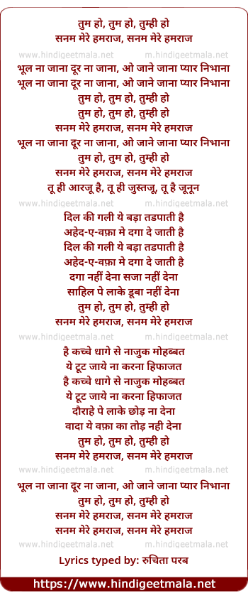 Lyrics of Sanam Mere Humraj - सनम मेरे हमराज