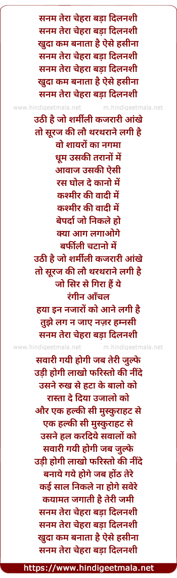 Lyrics of Sanam Tera Chehra - सनम तेरा चेहरा बड़ा दिलनशी