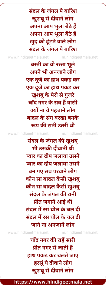 Lyrics of Sandal - संदल के जंगल पे बारिश