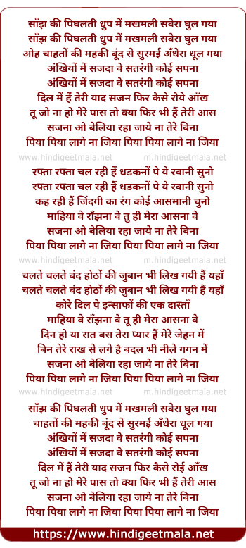 Lyrics of Sanjh Kee Pighalti Dhup Me Makhamali - साँझ की पिघलती धुप में मखमली