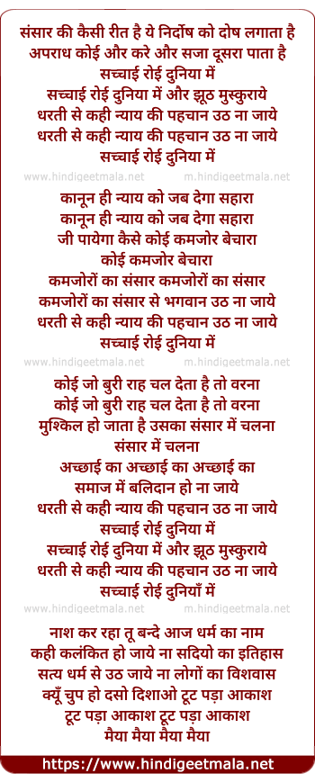 Lyrics of Sansar Ki Kaise Reet Hai - संसार की कैसी रीत है