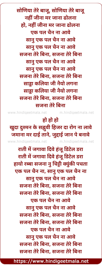 Sanu Ik Pal - सोणिया तेरे बाजू, सोणिया तेरे बाजू