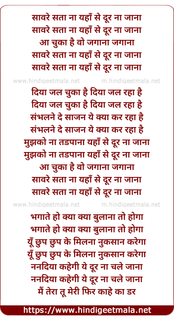 Lyrics of Sanware Sata Na - सावरे सता ना