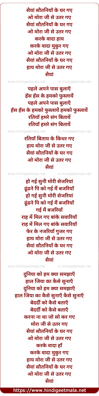 Lyrics of Sanyia Sautaniya Ke Ghar Gaye - सैयां सौतनियाँ के घर गये