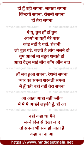 Lyrics of Sapna Woh To Mera Naam Hai (Ii) - हाँ हूँ वही सपना, जागता सपना