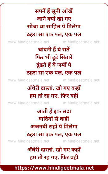 Lyrics of Sapnai - सपनें हैं सूनी आँखें