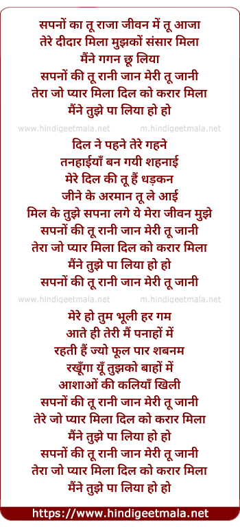 sapno ki tu rani jan meri tu jani