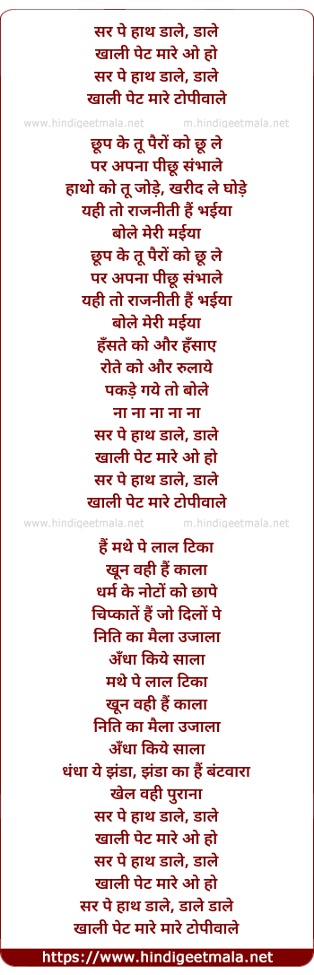 Lyrics of Sar Pe Hath Dale ( Topiwalleh) - सर पे हाथ डाले, डाले