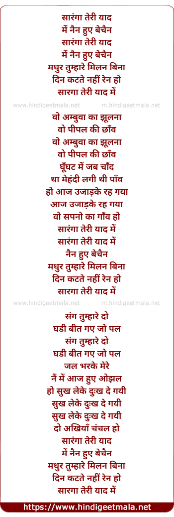 Lyrics of Saranga Teri Yaad Me (By Rafi) - सारंगा तेरी याद में