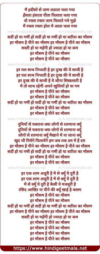 har mausam hai pine kaa mausam