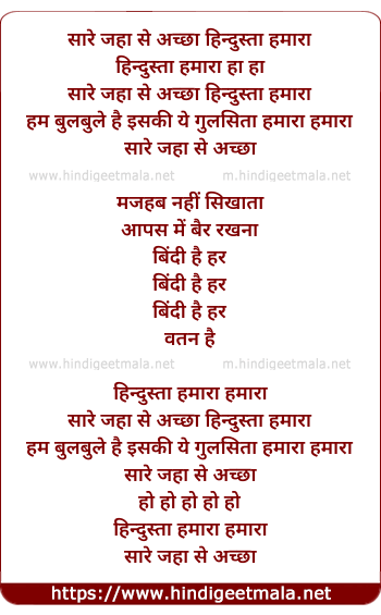 Lyrics of Saare Jahaa Se Acha Hindustan Hamara - II - सारे ज़हा से अच्छा हिंदुस्तान हमरा - II
