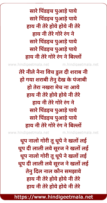 Lyrics of Sarey Pindich Pyaare - सारे पिंडइच प्यारे
