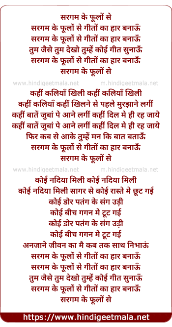 Lyrics of Sargam Ke Phulo Se Geeto Ka Haar Banau - सरगम के फूलों से गीतों का हार बनाऊँ