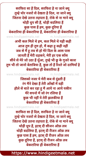 Lyrics of Sarphira Saa Hai Dil - सरफिरा सा हैं दिल