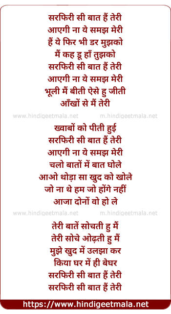 Lyrics of Sarphiri Si Baat Hai Teri - सरफिरी सी बात है तेरी