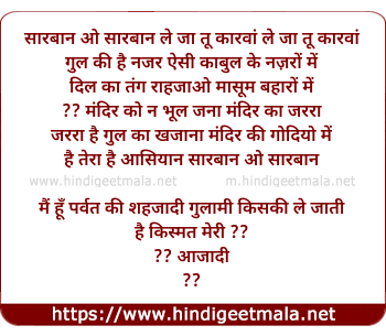 Lyrics of Saarbaan o saarbaan - - सारबान ओ सारबान