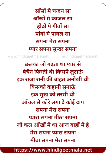 Lyrics of Sanso Me Chandan Sa Aankho Me Kajal Sa - साँसों मे चन्दन सा आँखों में काजल सा