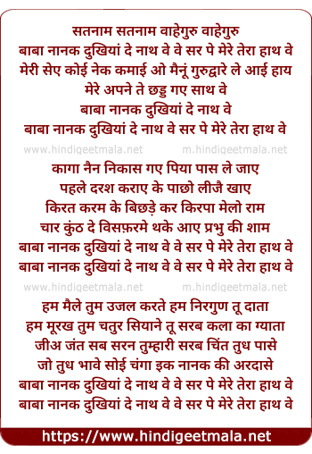 baba naanak dukhiya de naath ve sar pe mere tera haath ve