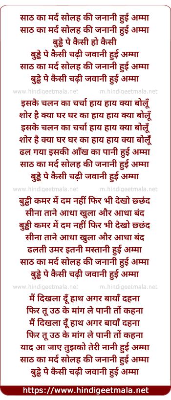Lyrics of Sath Ka Mard Solah Ki Janani - साठ का मर्द सोलह की जनानी
