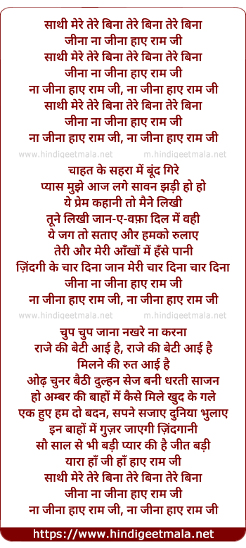 Lyrics of Saathi Mere Tere Bina - साथी मेरे तेरे बिना