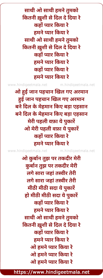 Lyrics of Sathi O Sathi Humne Tumko - साथी ओ साथी हमने तुमको